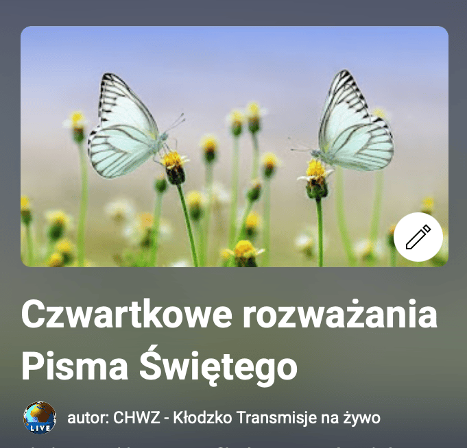 Oglądaj nasze transmisje na żywo w każdy czwartek i niedzielę.